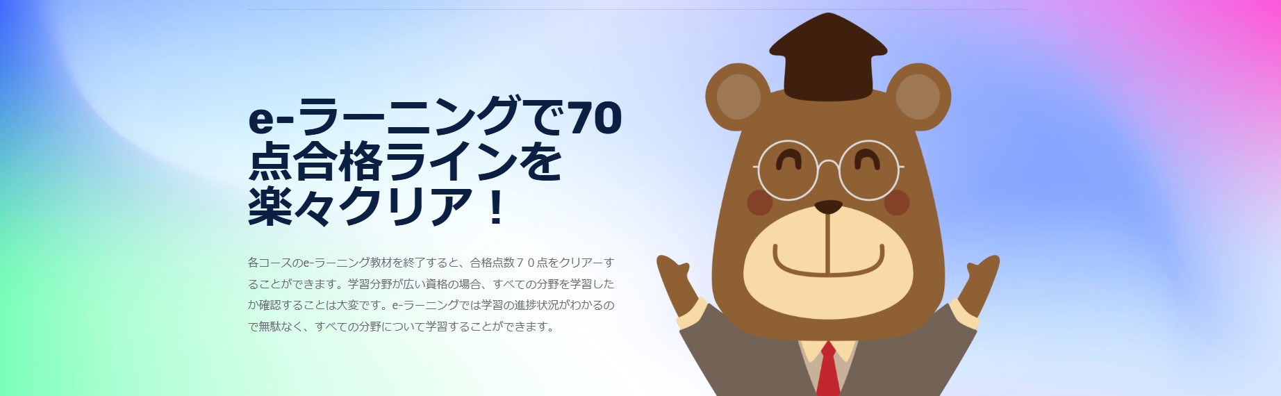 資格試験学習の決め手はE-ラーニングです。下記のアイコンをクリックしてe-ラーニングホームページにアクセスしてください。